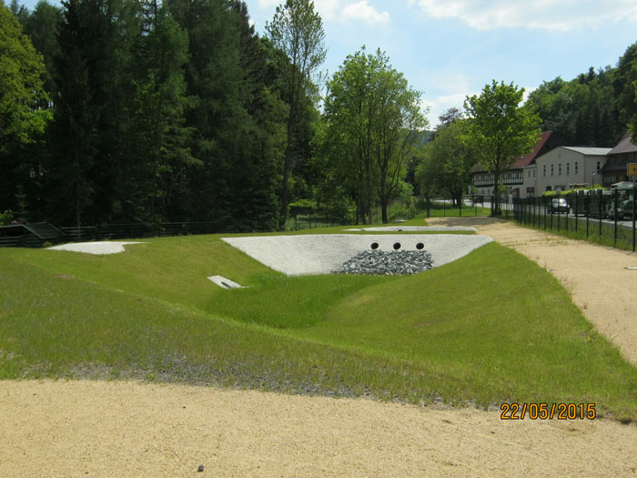 K 8651 in Jonsdorf, Regenwasserkanalisation mit Regenrückhaltebecken